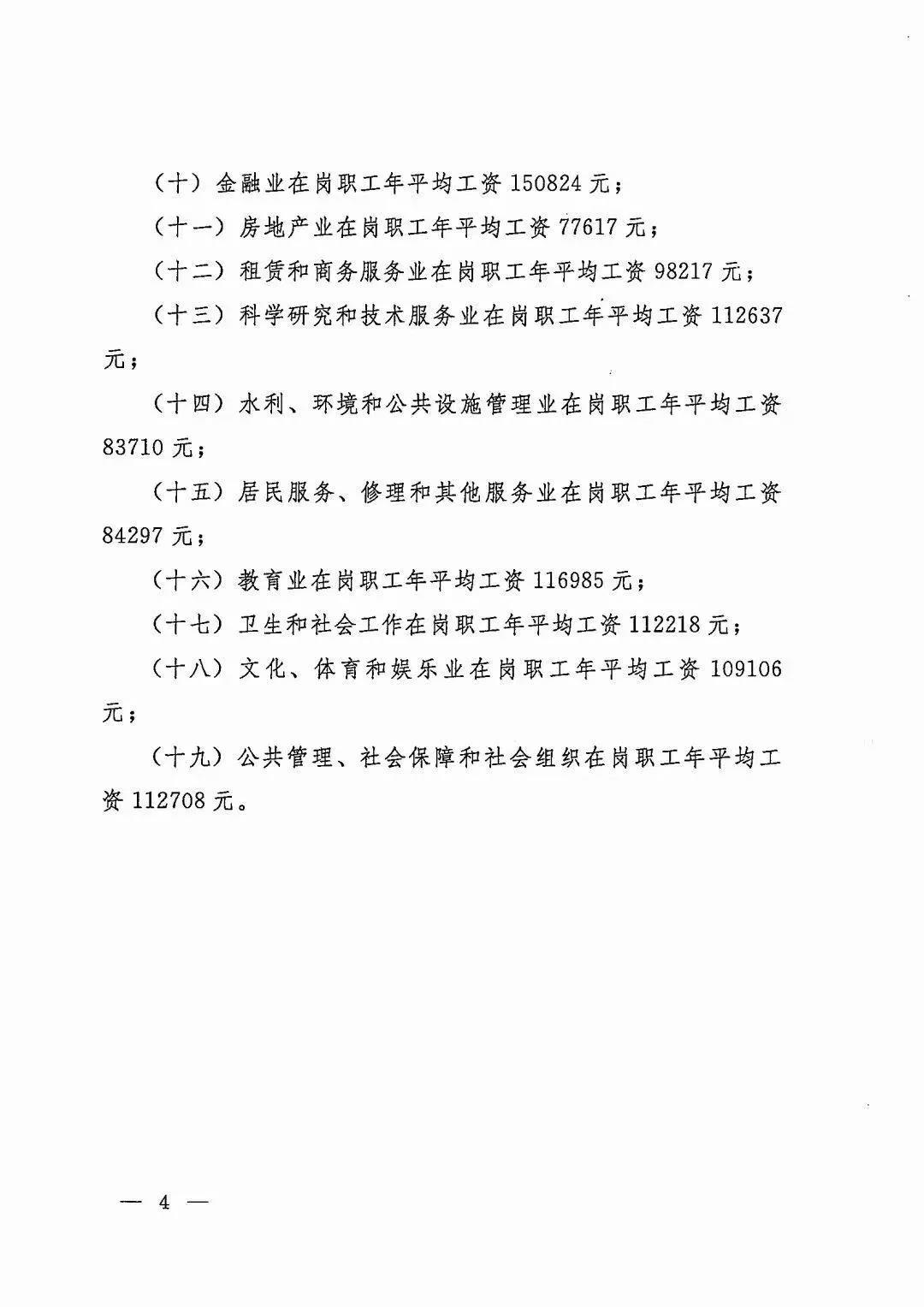(十九)公共管理、社会保障和社会组织在岗职工年平均工资112708元。