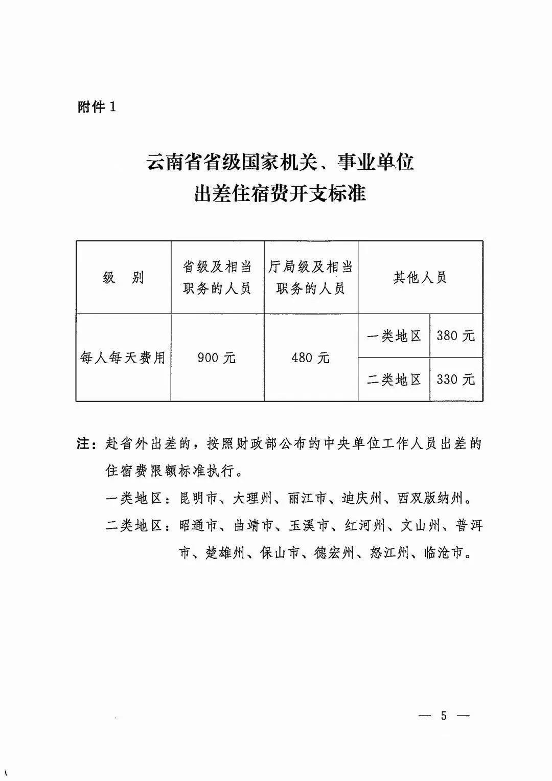 附件:云南省省级国家机关、事业单位出差住宿费开支标准