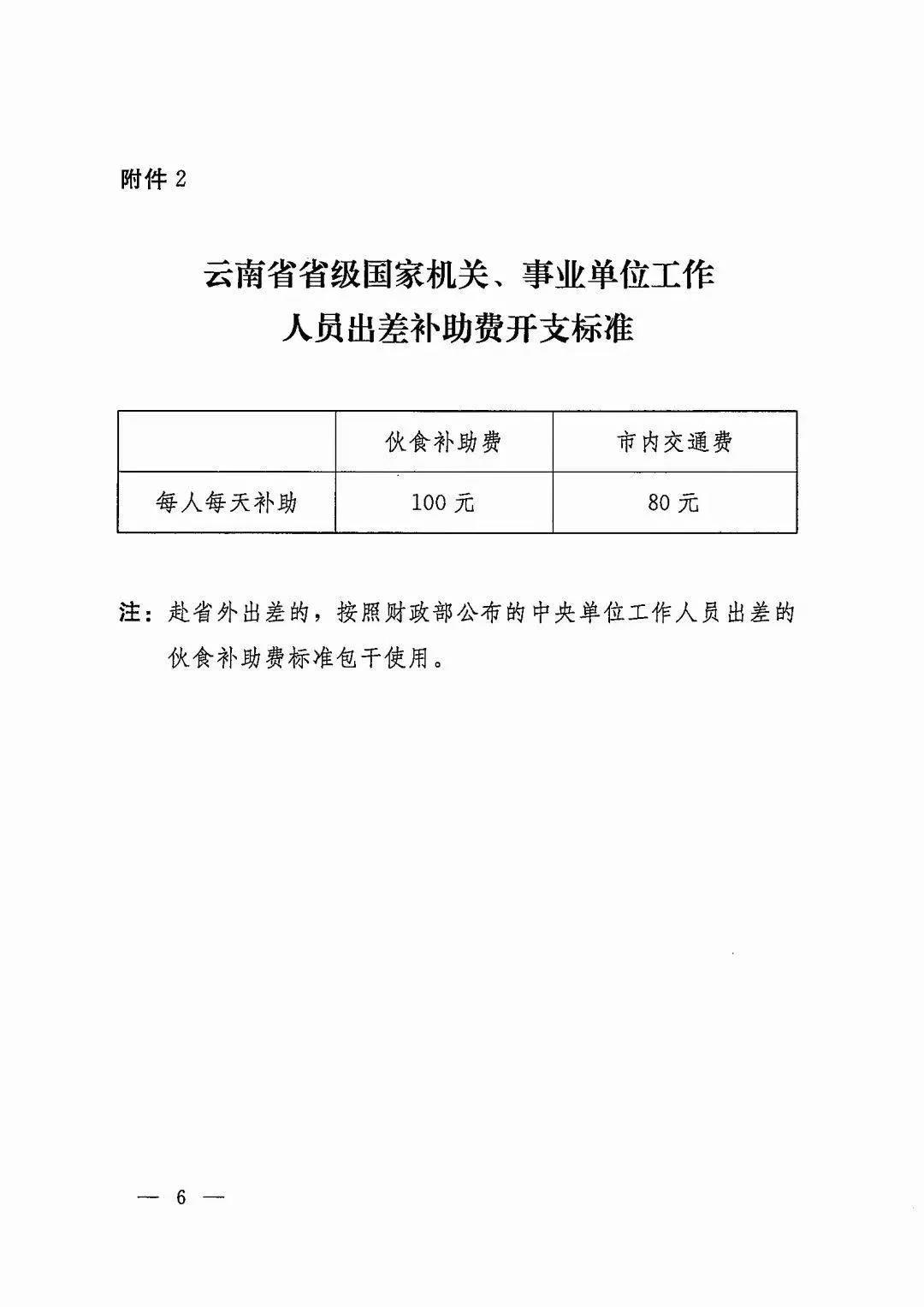 云南省省级国家机关、事业单位工作人员出差补助费开支标准