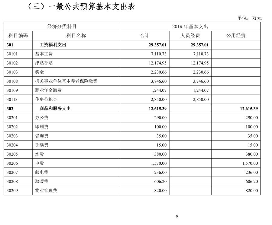 2、公用经费15,612.3万元,主要包括:办公费、印刷费、咨询费、手续费、水费、电费、邮电费、取暖费、物业管理费、差旅费、维修(护)费、租赁费、会议费、培训费、公务接待费、专用材料费、劳务费、委托业务费、工会经费、福利费、公务用车运行维护费、其他商品和服务支出、办公设备购置、信息网络及软件购置更新等。