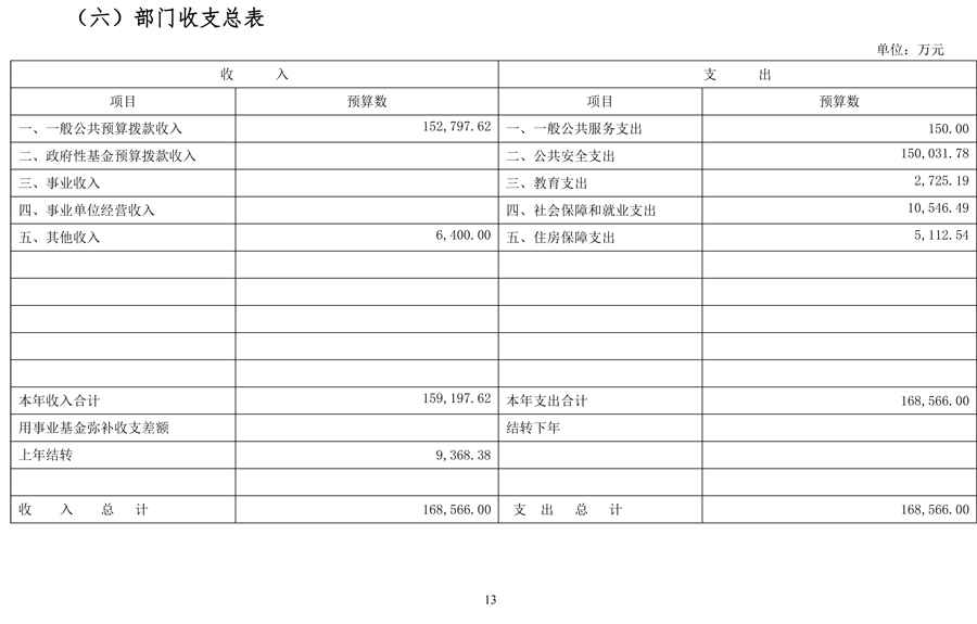 最高人民法院2019年收支总预算为168,566.00万元。按照综合预算的原则,最高人民法院所有收入和支出均纳入部门预算管理。收入包括:一般公共预算拨款收入、其他收入、上年结转;支出包括:一般公共服务支出、公共安全支出、教育支出、社会保障和就业支出、住房保障支出等。