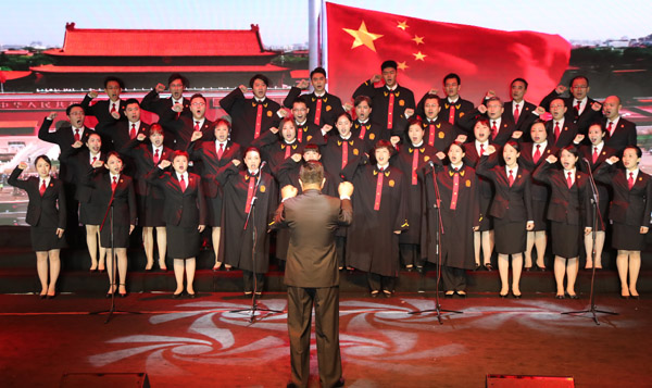 天津市高级人民法院干警合唱原创歌曲《永恒的信仰》。 刘红卫 摄