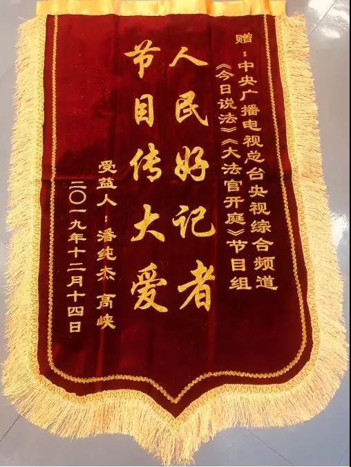 就在《大法官开庭》第五季收官之后,节目组收到了一面从哈尔滨寄来的锦旗,这是2017年《大法官开庭》之《无法回头》的苦主寄来的。她们的亲人在案件中被歹徒抢劫杀害,被告人无力进行附带民事赔偿,黑龙江省高级人民法院院长石时态大法官连续九个小时在看守所提讯两名被告人,在二审中发现新证据——一个带血的背包,使得案件水落石出。今年她们收到了黑龙江省高级人民法院的三十万元司法救助,受伤的心灵亦得到了慰藉。