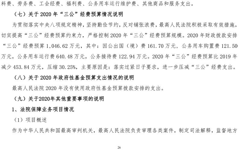 最高人民法院2020年度部门预算 - 中华人民共和国最高人民法院