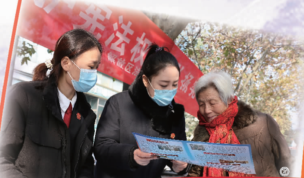 12月4日,河北省宁晋县人民法院干警在民乐园活动广场向群众发放宪法宣传资料。靳跃进 摄
